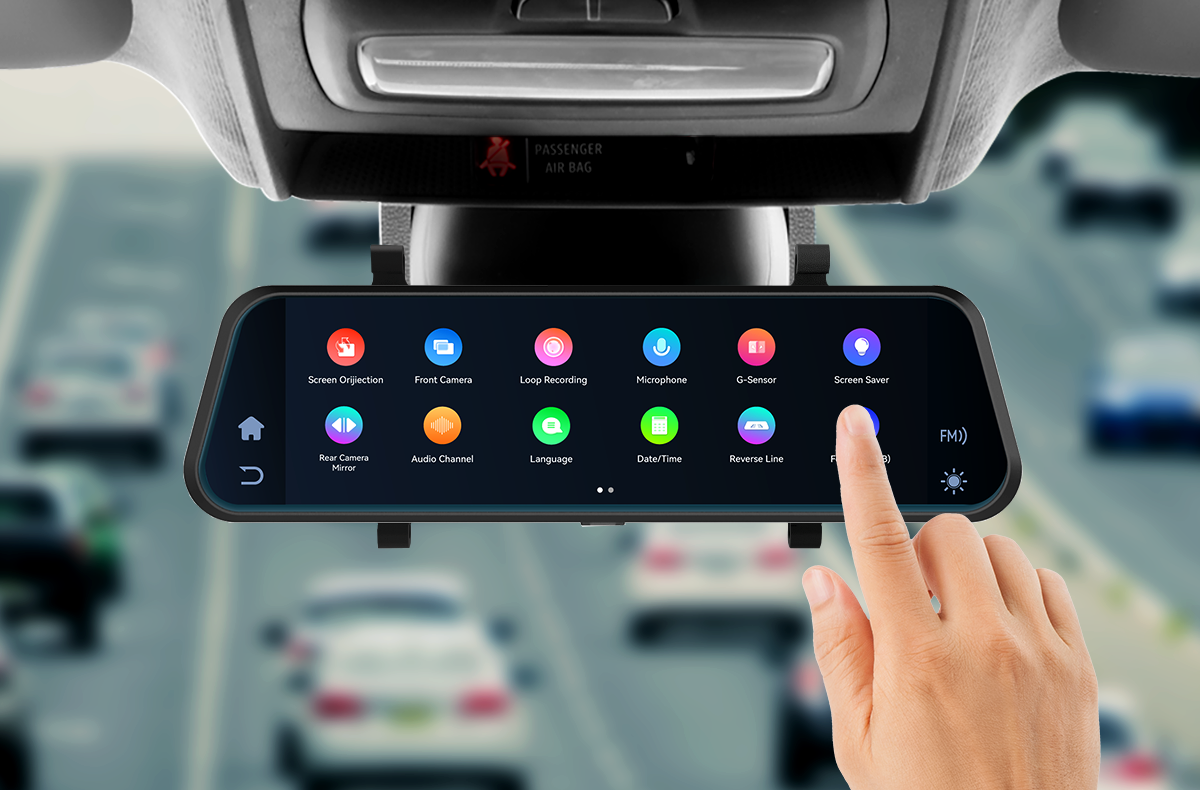 9" Wireless Smartphone Mirror Monitor with Reverse Camera & Dual Channel Recording AM9M02R