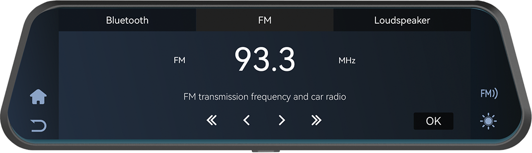 - Enjoy audio playback via Bluetooth connection to the factory radio (Compatible Factory Radio requires Bluetooth), FM transmission to the factory radio, or through the integrated speaker on the mirror monitor, providing flexible audio solutions.