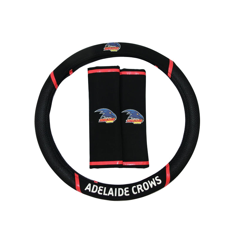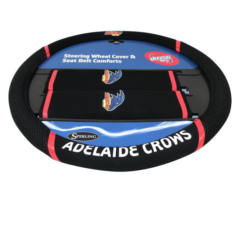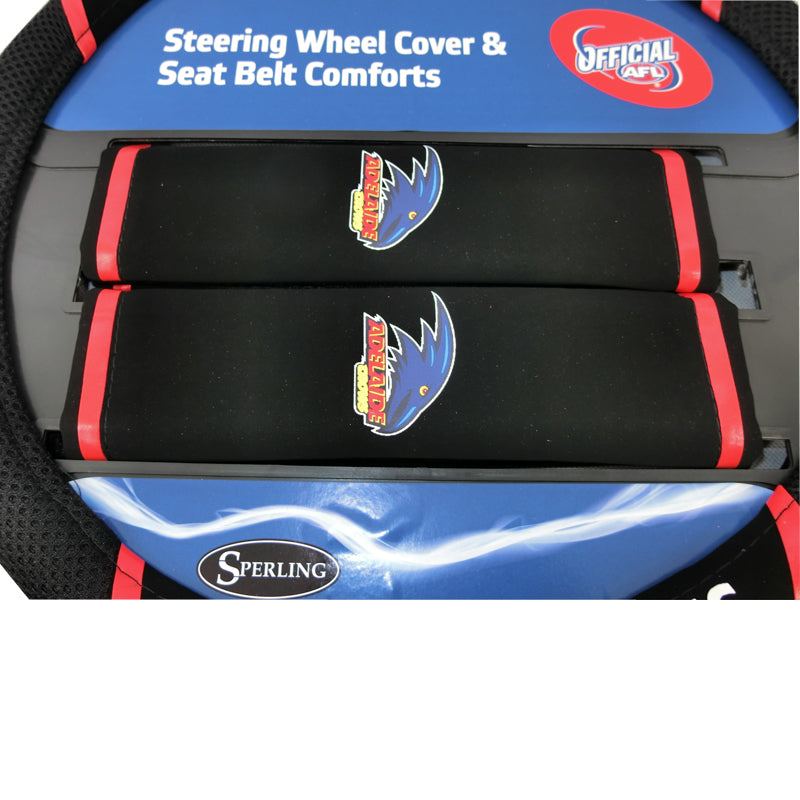 - AFL Steering Wheel Cover with bonus seat belt pads, Adelaide Crows.