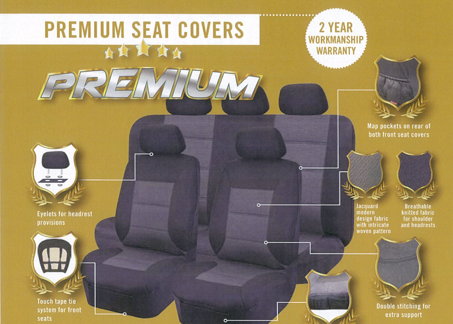 - Custom made jacquard front and rear seat covers, fit like a glove.