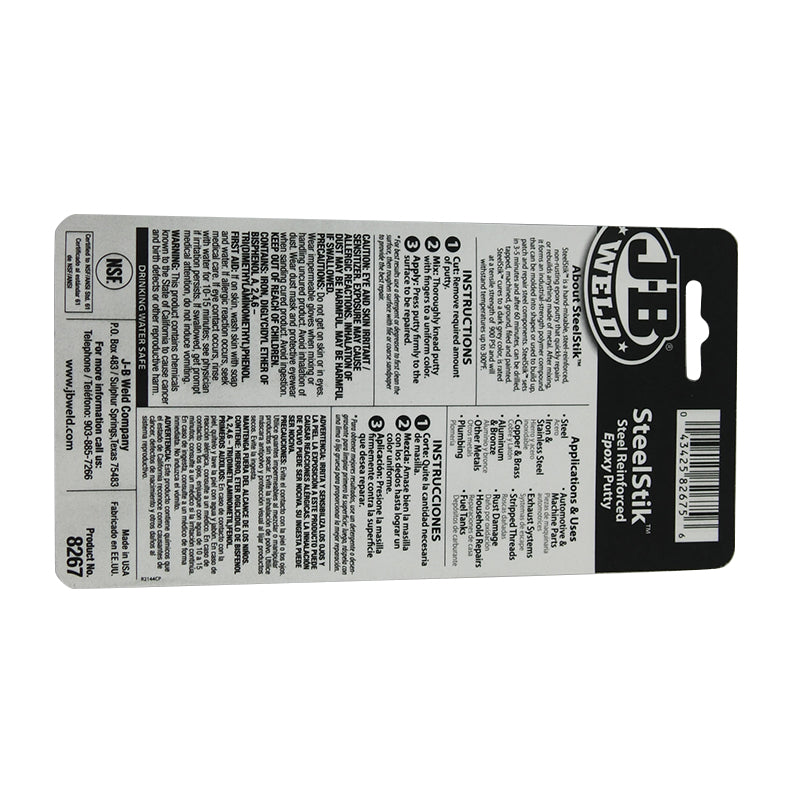 SteelStik is a hand-mixable, steel-reinforced, non-rusting epoxy putty that quickly repairs or rebuilds anything made of metal. After mixing, it forms an industrial-strength polymer compound that can be molded into shapes or used to build up, patch and repair steel components. SteelStik can be drilled, tapped, machined, ground, filed and painted.