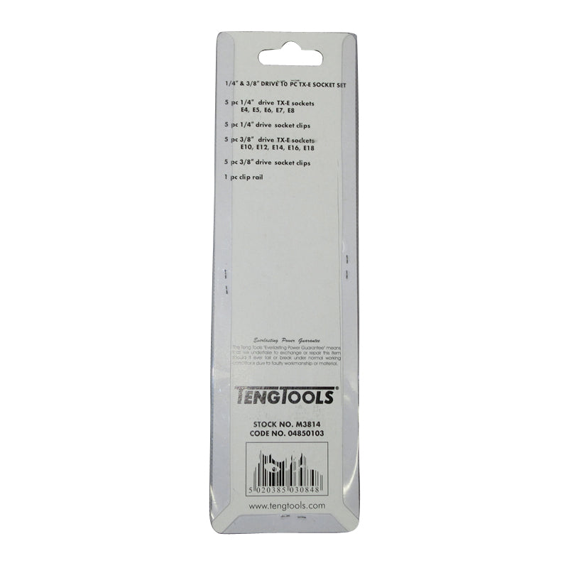 Teng Tools - 10 Piece 1/4 inch and 3/8 inch Drive TX-E Sockets on Clip Rail M3814