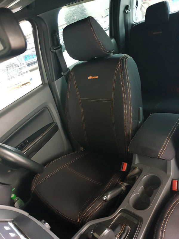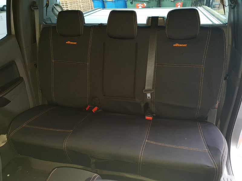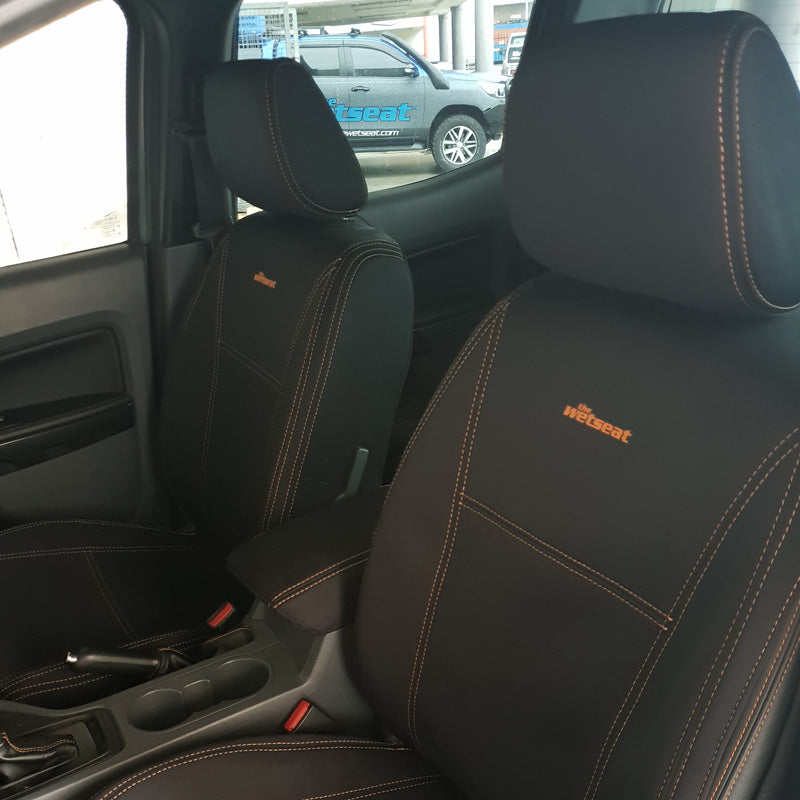 Wet Seat Black Neoprene Seat Covers Suits Ford Ranger PX2/3 Dual Cab 7/2015-11/2020 Orange Stitching
